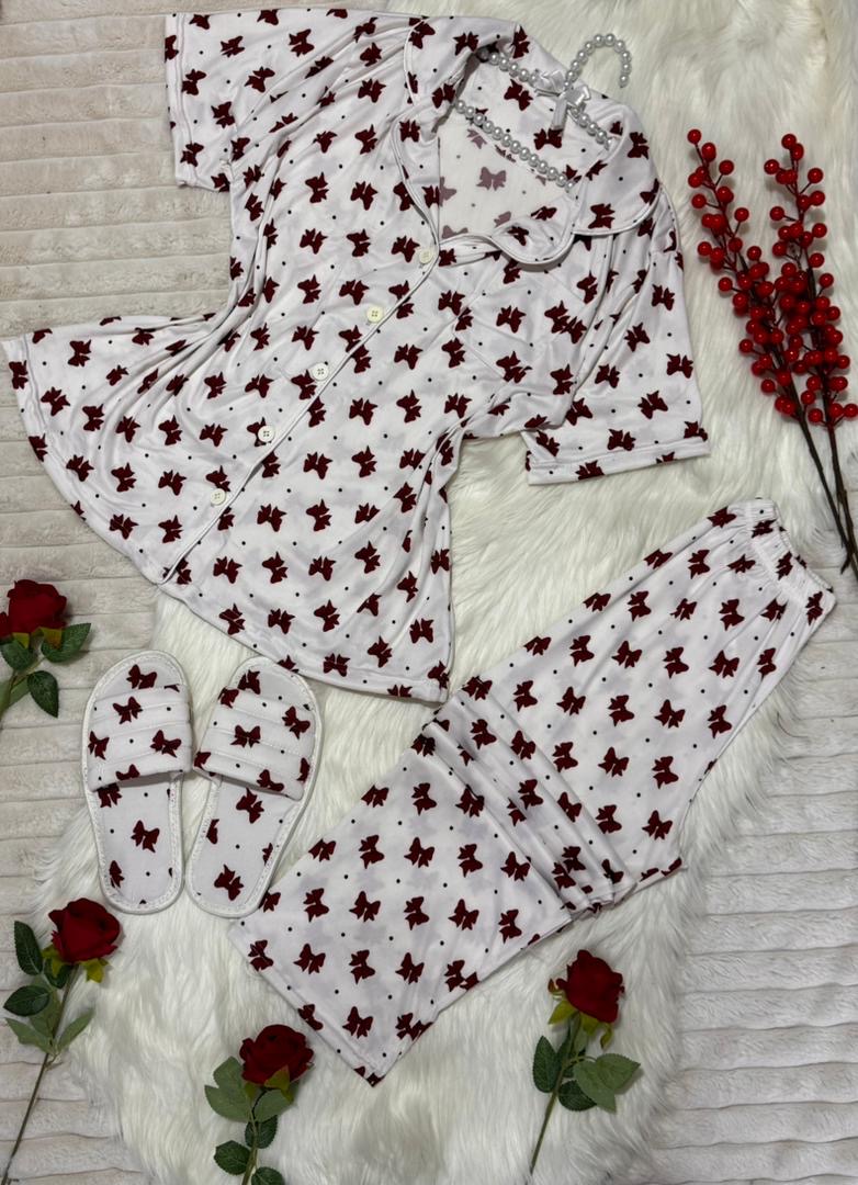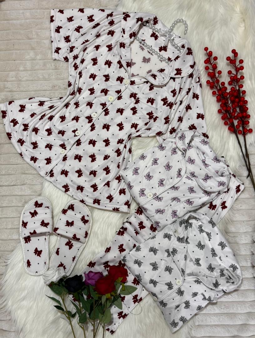 بيجاما زرار مع سليبر✨ قماش سوزيت زبدة اجنبي مكفول✨ فري سايز✨ 38…44✨ 3الوان✨