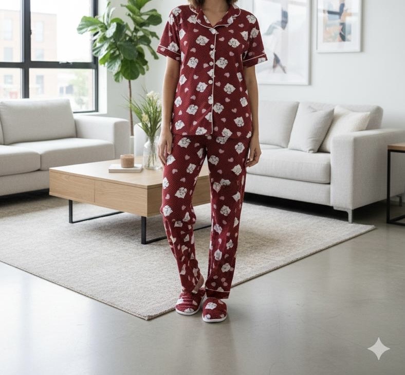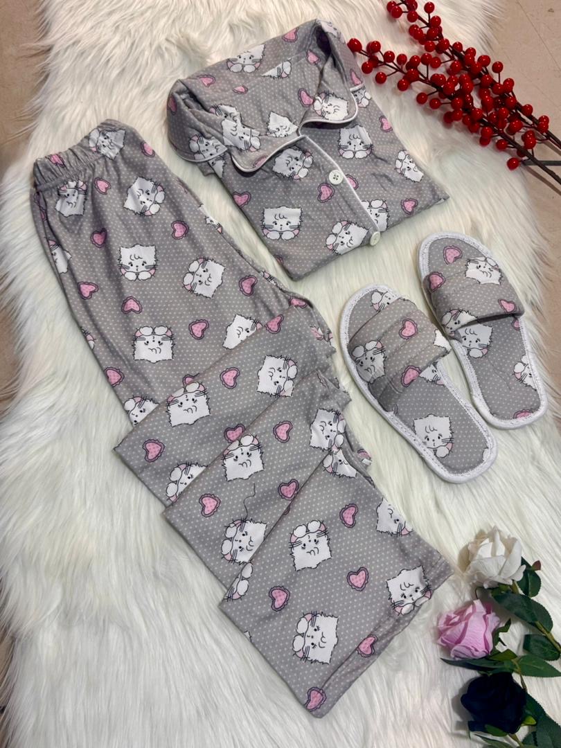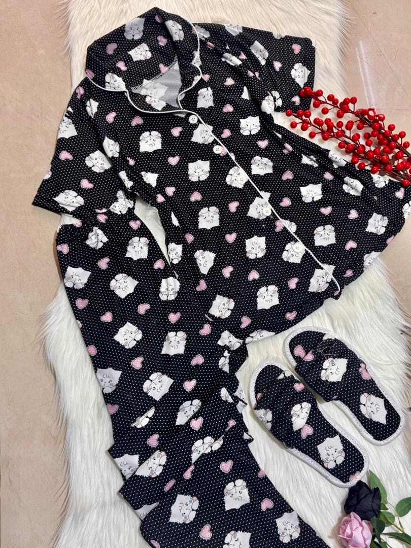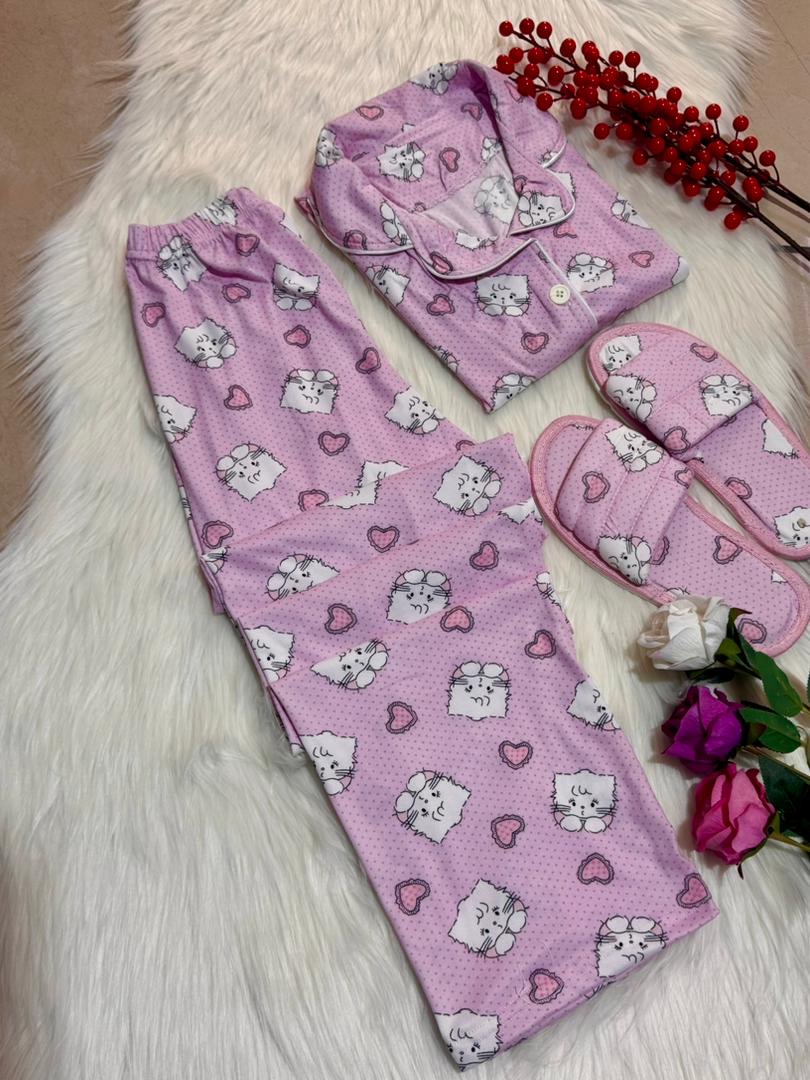 بيجاما زرار مع سليبر✨ قماش سوزيت زبدة اجنبي مكفول✨ قري سايز✨ 38…44✨ 4الوان✨