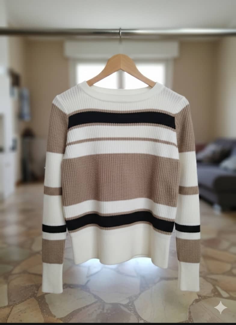 ☻☻☻كوني شيك وأنيقة☻☻☻ كنزة مقلمة قماش تريكو موهير تقيل